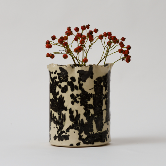 TORN CYLINDER VASE - CREAM WITH BLACK TERAZZO