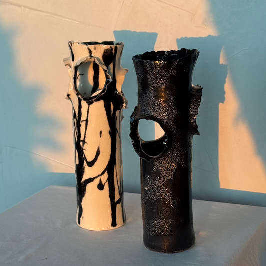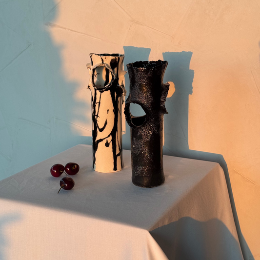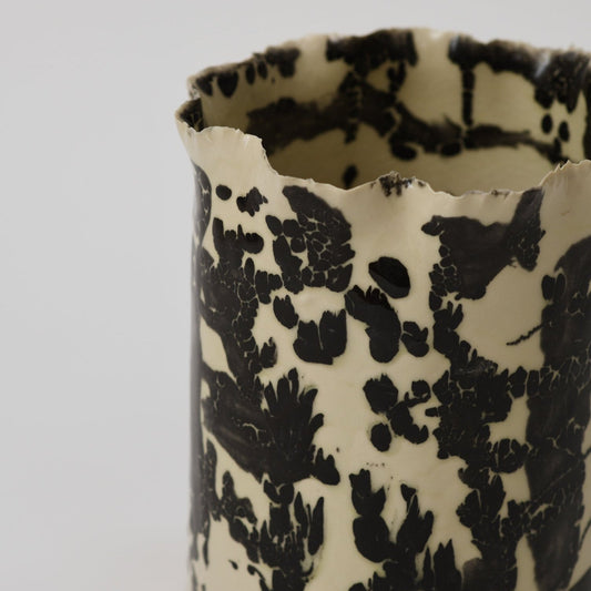 TORN CYLINDER VASE - CREAM WITH BLACK TERAZZO