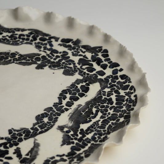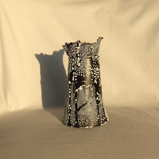 CONCAVE VASE - BLACK WITH WHITE LICHEN